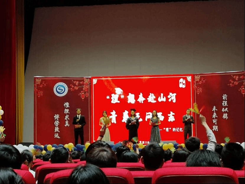 本次毕业晚会以“理想奔赴山河,青春无问西东”为主题,包括“乘风起”“正青春”“话别离”三个篇章,层层展现了人生的跋涉和成长的蜕变。暖场视频中倒计时的针脚,让往事缓缓流淌。