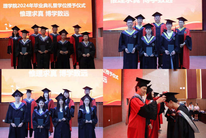 学位授予仪式上,九游 领导、教师为毕业生拨穗,颁发毕业证书和学位证书并合影留念。最后,在师长的挥手送别中,2024届毕业典礼到此结束。愿大家带着独有的理学记忆,追风赶月,奔赴星辰大海,永葆少年的青春激昂!