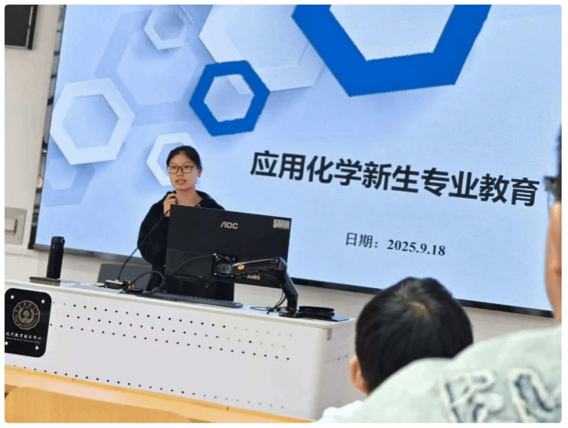 陆自强院长以“坚定理想信念,科学规划人生”为主题,深入阐述了新时代大学生应具备的责任担当与价值追求。他强调,大学阶段是人生发展的关键期,新生应主动将个人成长与国家发展、社会需求紧密结合,尽早确立考研深造、科研创新或高质量就业等发展目标,努力成长为堪当民族复兴重任的时代新人。秦向东副院长系统介绍了九游 近年来在学科建设、科研成果、人才培养等方面取得的突出成绩,重点解读了应用化学专业的核心优势与发展前景。专业负责人袁文娟老师围绕专业核心课程设置、实践教学体系、学分绩点制度等内容进行了详细讲解,帮助新生全面了解专业学习要求与评价机制,为科学制定个人学习计划、提升学业质量提供了清晰指引。班主任范青飞老师对学生的学习和生活提出宝贵建议。