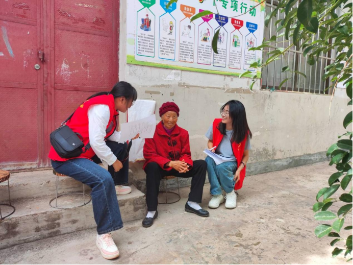 图为实践队员向村民宣传“习近平总书记在文化传承发展座谈会上重要讲话精神”。