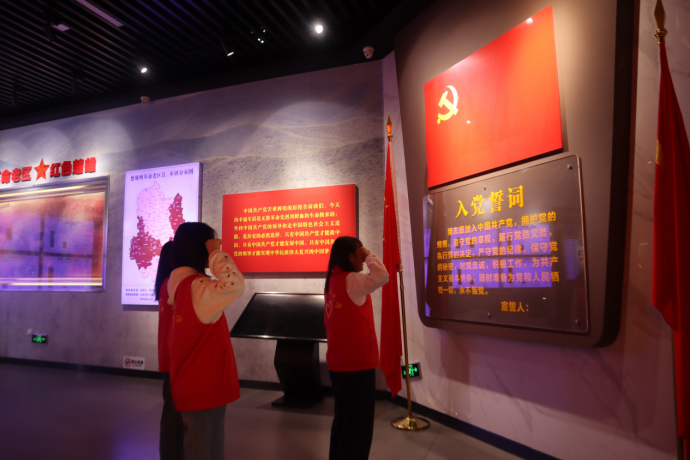 为追寻党的足迹,赓续红色文化血脉,感悟激情岁月中的爱国情怀。7月21日,实践队员在楚雄州博物馆参观红色文化长廊,开展重温入党誓词仪式教育活动。这既是一次生动的红色文化教育课,也是一堂深刻的爱国教育思政课。在中共楚雄历史展厅,实践队员依次学习了“播火先驱、金沙水拍、抗日救亡、解放号角和走向新生”五个单元的内容,深入了解了当地党史文化、长征文化、抗战文化的基本内涵,切身体会到了革命先驱们为了信仰不屈不挠、不怕牺牲、勇往直前的革命精神。队员们纷纷表示要传承红色基因,植育爱国情怀。