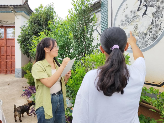 图为分队队员在寻甸彝族回族自治县甸沙街道调查当地的民族文化。