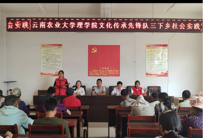 图为实践队员在国家级非物质文化遗产梅葛的主要发源地之一(马游村)进行“习近平总书记在文化传承发展座谈会上重要讲话精神”主题宣讲。