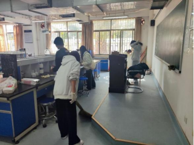在活动过程中,志愿者们分工明确,各司其职,清洁、整理了实验仪器、设备和工作台,并对地面、墙壁和窗户等进行了全面的清洁。同时,仔细地检查了实验室的消防设施和电气设备,以确保实验室的安全。