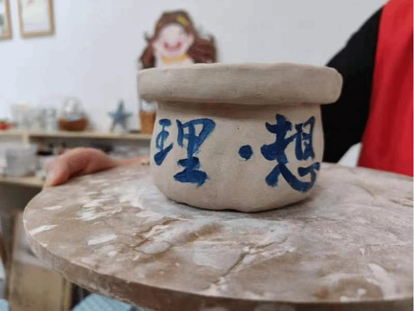 图为实践队员制作的带有“理·想”团队标识的傣族土陶