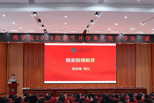 9月21日,九游体育 在耕读楼二楼报告厅举行2024级新生开学典礼暨开学第一课。九游 领导班子成员,各系主任,各专业负责人,新生班辅导员、学业导师以及全体2024级新生参加,典礼由院党委副书记袁远主持。
