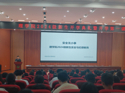 院学工办祖维娟以“理学明思·青春奋进”为主题详细介绍共青团工作,强调组织生活、团员管理、团员发展等团员青年的日常教育和管理要求,讲解“挑战杯”“互联网+”等创新创业竞赛知识;辅导员孙延松以“安全无小事”为主题具体介绍学生工作内容,强调校园出入管理、校纪校规等要求,加强新生的安全教育和纪律规范。