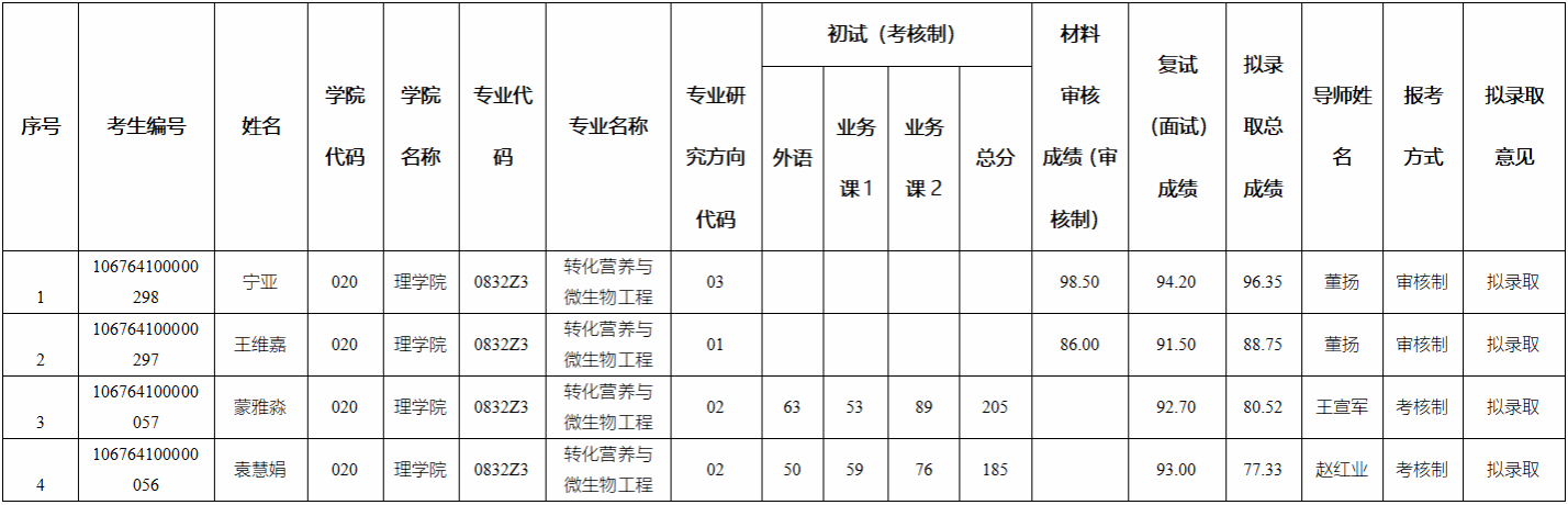 2024年转化营养与微生物工程博士研究生拟录取名单公示